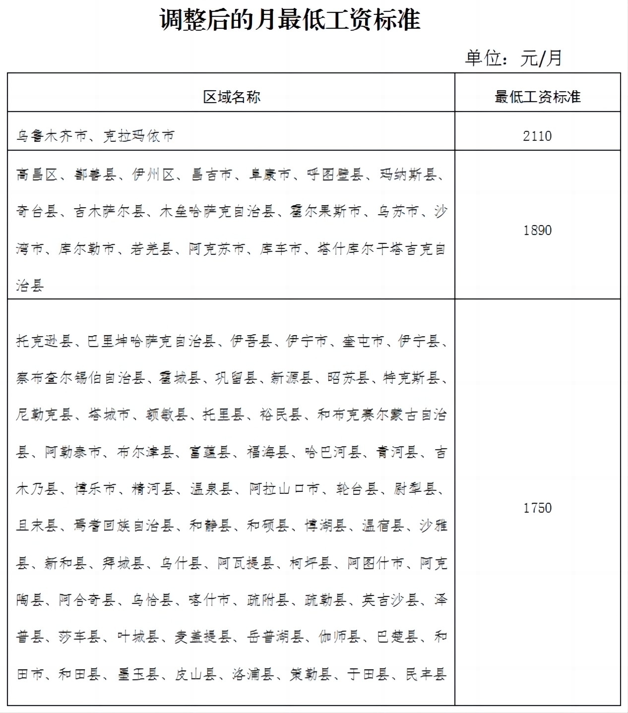 新疆:拟调整最低工资标准